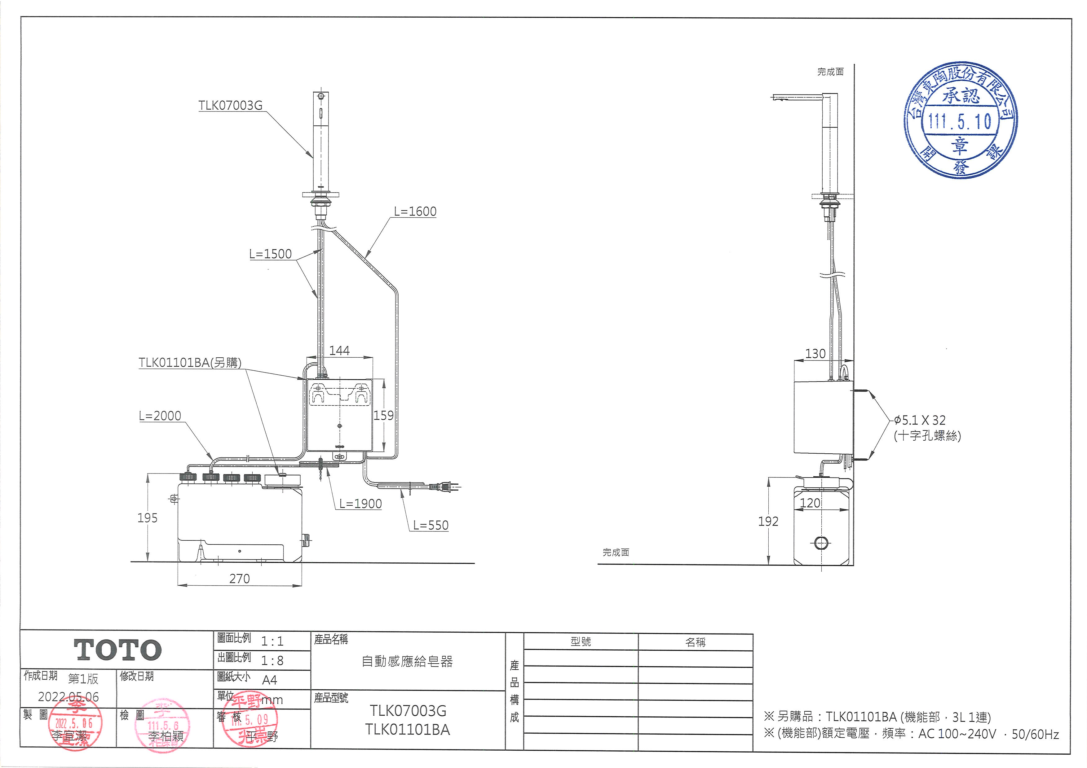 1L容量為110V