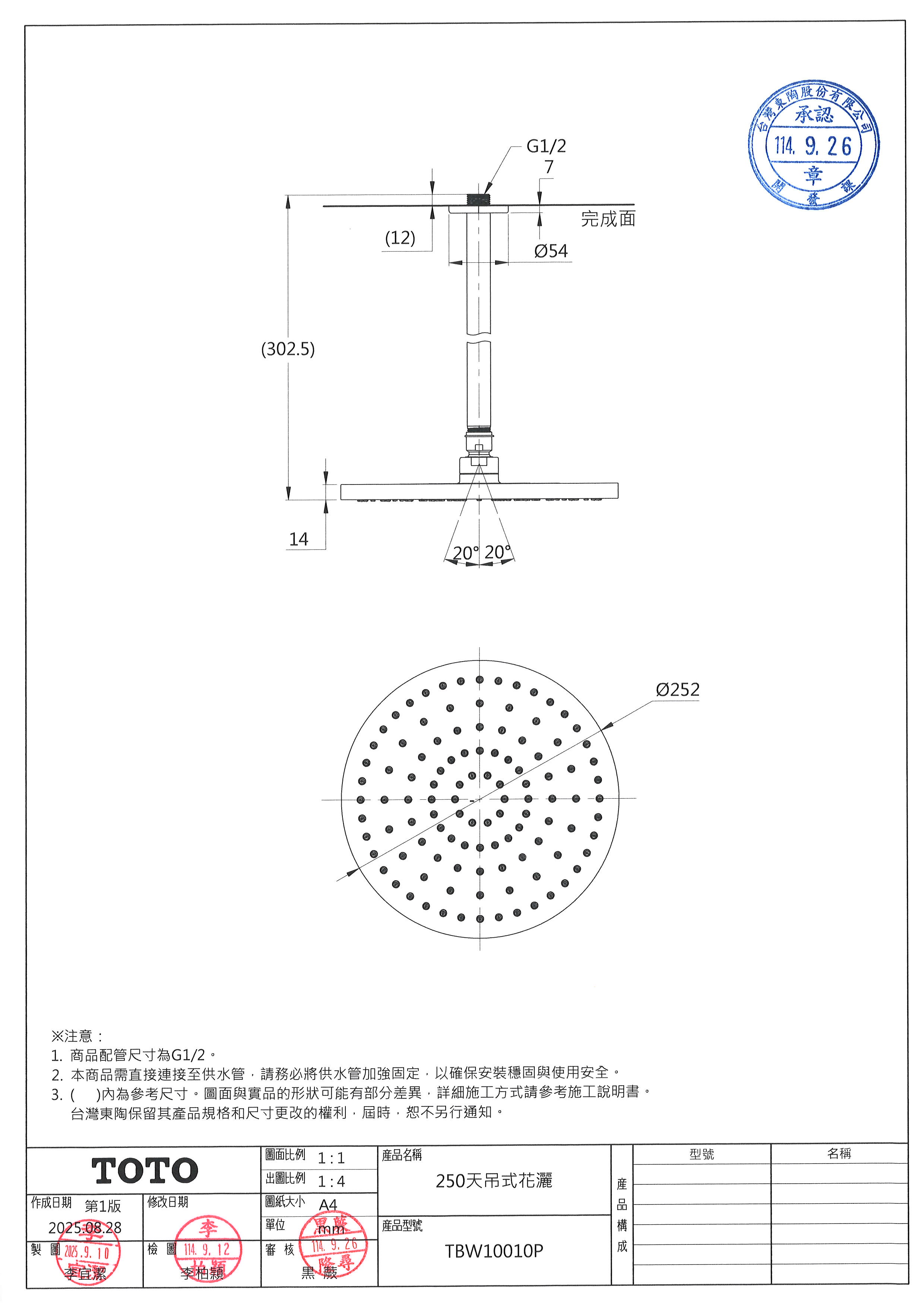 250壁出式花灑